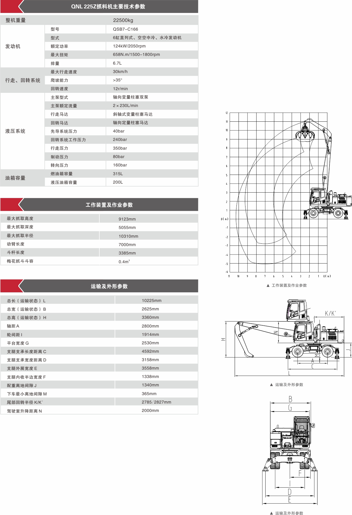 8、輪胎式抓料機(jī),下車(chē)雙支腿布置,轉(zhuǎn)場(chǎng)方便快捷,作業(yè)穩(wěn)定可靠。