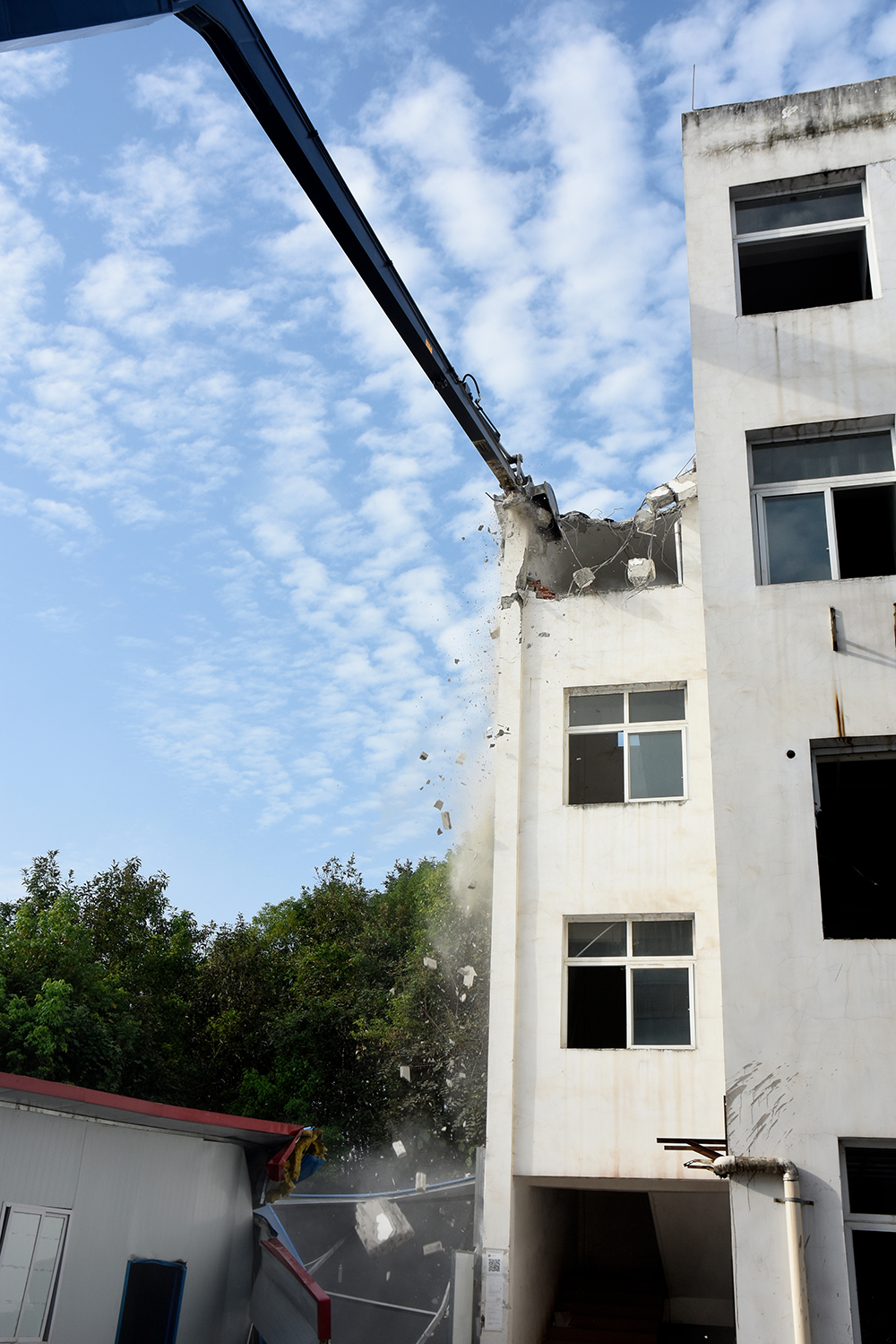 日前,勤牛最新研發的36T兩段式加長臂履帶式挖掘機,迎來了出產以來的首次實地作業。高帥如它,未負重托,以相較普通挖掘機一倍增速的效率,圓滿完成了辦公樓的拆解任務。 現場見證,超長型加長臂矯健靈活、升級版斗桿伸縮自如、加強型挖斗強悍有力,強強聯合,無需移動便可輕松解體遠處建筑物,作業時間大大縮短,施工效率倍速提高;搭配力學性能可靠的穩重機身,安心又舒適;此外,加長臂能夠更好的對駕駛人員起到保護作用,有效防止重物墜落砸傷作業人員。此次小試牛刀,該機高效、便利、環保、安全等優勢凸顯。一舉數得,勤牛加長臂助您事業騰飛一臂之力!
