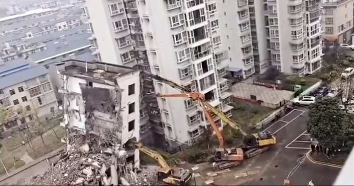近日,有挖友講述了一個貌似是正在進行拆遷作業的事件,現場幾輛挖掘機在進行拆樓作業時,被拆的大樓倒塌方向發生了偏移,眼看就要砸到旁邊的住宅大樓,幸好施工方安排了兩輛加長臂挖掘機支撐樓體。下面的朋友也是紛紛開始出謀