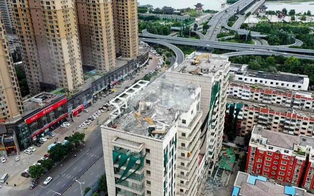 牛!洛陽4臺挖掘機(jī)攀爬到60米高樓頂施工作業(yè)